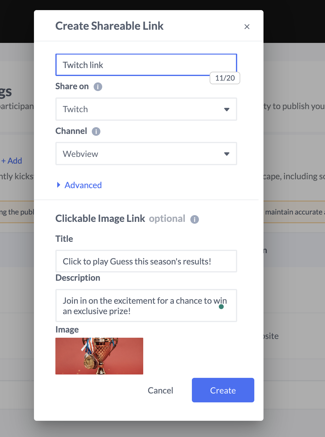 Clickable Image Links generate a preview card when sharing the activation. This feature is particularly useful when posting activation links on social media platforms such as Facebook and X (Twitter), making the link visually engaging and increasing click-through rates.